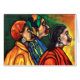 Cores brilhantes definem esta pintura de três mulheres afro-americanas.