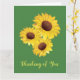 Três Cartão de saudação de Vazio Sunflower com cor de fundo personalizável e texto frontal. Escreva seu próprio dentro de mensagem.
