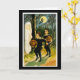 Vintage Halloween ilustrando um truque ou tratadores sendo assustados por um fantasma na floresta.