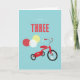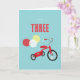 Este design apresenta um triciclo vermelho clássico com balões em um esquema de cores vermelho, azul e amarelo primário. É a maneira perfeita de desejar ao seu pequeno especial um feliz roda girando no terceiro aniversário!