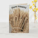 Vaisakhi, também conhecida como Baisakhi, é um festival importante celebrado pelos sikhs. Vaisakhi começou como um festival da colheita na região de Punjabi, no norte da Índia. Este belo cartão apresenta uma fotografia de trigo num cesto tecido com uma mensagem editável acima dele. No interior há uma mensagem editável. Você pode usar isto como um cartão de Vaisakhi, cartão de aniversário, etc. Você pode alterar as mensagens ou apagá-las para criar um cartão em branco. Você também pode alterar as cores do fundo no interior e no verso. Crédito da foto: Gabriela Fechet, 2020.