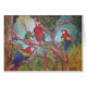 Este design tropical de um trio de macaws brilhantes no selvagem é de uma pintura a óleo pelo artista sul Betty Laur de Florida. www.bettylaur.com