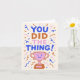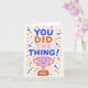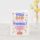 Este cartão divertido e alegre é perfeito para celebrar qualquer grande conquista com humor e coração. Projetado com letras inspiradas no retro, confetes coloridos e um troféu sorridente, é uma ótima escolha para adolescentes, graduados ou qualquer pessoa que tenha alcançado algo digno de comemoração. Ideal para quem procura uma maneira leve, moderna e colorida de dizer parabéns.