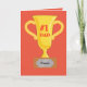 Cartão de felicitações do Troféu de Ouro Pai Número 1 é uma bela representação do Dia dos Pais. Aqui está um fundo colorido laranja vermelho com um troféu dourado com #1 pai escrito em vermelho. Há um espaço para personalizar o texto com o nome dele. Dentro do cartão há uma saudação calorosa. O cartão tem acabamento brilhante. Compre este cartão do Dia dos Pais hoje!