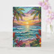 Pretty tropical anniversary birthday card. A cute coastal themed poem about love inside can be personalized or left alone.. Gorgeous ai impasto oil painting style illustration of the blue ocean, a sandy beach surrounded by palm trees at sunset. Inside is a cute crab and sea glass.