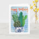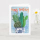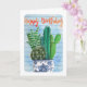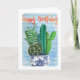 Cartão Tropical trendy verde & azul Cactus Aniversário