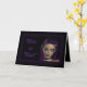 Esta placa apresenta uma garota bonita em um fundo escuro com um quadro púrpura marmoreado para a frente. Este lindo cartão de Dia das Bruxas será perfeito para seus amigos e família.