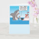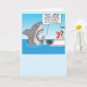 Aqui está um cartão de aniversário de desenho animado engraçado com um cara que está enojado por ter um peixe roçando sua perna, sem perceber que as coisas estão prestes a piorar muito. Este cartão é um monte de diversão para qualquer fã de tubarões ou humor de tubarão!