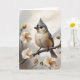 Cartão Tufado Titmouse Descansando sobre Flores de Galho