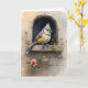 Cartão Tufted Titmouse Reclinado Flores no Peitoril da Ja