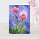 As tulipas dançam alegremente contra um delicioso fundo azul. Esta placa é vazio de dentro para que você possa adicionar seu próprio sentimento.