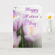 Cartão Tulipas brancas e roxas brilhantes do Dia de as mã