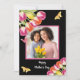 Design apresenta tulipas de aquarela e borboletas em fundo preto. Carregue sua própria foto especial e crie um cartão personalizado de saudação para sua maravilhosa mãe! O texto e a fonte podem ser alterados para se adequarem. A parte traseira do cartão é vazio para que você possa escrever sua própria mensagem ou personalizar como desejar. A fotografia apresentada no produto destina-se apenas a fins ilustrativos e não deve ser adquirida com o cartão. Por favor, carregue sua própria foto.