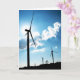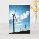 Turbina eólica na luz traseira do sol com céu azul e nuvens.