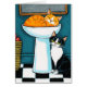 Cartão de nota temático do gato bonito que caracteriza uma ilustração do gatos no banheiro. Um gato malhado do gengibre dorme pacificamente no dissipador e um smoking senta-se abaixo de olhar fixamente com os olhos verdes grandes. Aperfeiçoe para enviar aos amantes do gato e à utilização para toda a ocasião. Personalize a mensagem interna ou suprima-a para um vazio para dentro. © Lisa Marie Robinson da ilustração. Todos os direitos reservados.