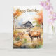 Two deer in mountain landscape with trees and flowers. Suitable for a birthday for anyone