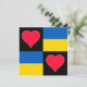 Belo quadrado da Ucrânia saudando cartões para pessoas ucranianas orgulhosas. Com um padrão único e controlado feito de corações vermelhos e a bandeira nacional da Ucrânia. Trabalha no excelente como um convite para celebrações patrióticas ucranianas, chegando a amigos e familiares na Ucrânia, ou para projetos patrióticos de artes e artesanatos!