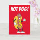Último Dia da Escola com um cachorro-quente cartoon com polegares para cima. Um cartão de excelente para o fim da escola. Celebre o último dia da escola e o primeiro dia de Verão com este cartão de cachorro quente e fofo!