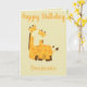 Um cartão de boas-vindas para um bebê, este design apresenta um fundo bege com uma girafa-mãe e bebê. "Parabéns" está escrito em texto cor de laranja cursivo com o nome na parte inferior. Na dentro é uma mensagem adorável. Peça o seu hoje! Clipart: Prettygrafik design (https://www.etsy.com/shop/Prettygrafikdesign Mensagem do cartão: ©2020 Christiana Ogbeide