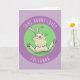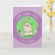 Cartão Um belo e feliz desenho animado de coelho roxo rox