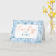 Esta placa de saudação dobrada de 7" x 5" contém espaços reservados para qualquer nome e tempo sóbrio. Dois campos para número e comprimento. Exemplos: um ano; 30, dias; 6, meses. A frente não editável apresenta a saudação, "Um dia de cada vez", em turquesa e laranja com um fundo floral azul abstrato em pó.