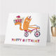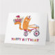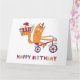 Cartão Um gato em uma bicicleta carrega presentes de aniv