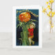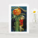 Vintage Halloween ilustra um cartão de saudação mostrando uma criança vitoriana escalando um palheiro com um Jack-o-Lanterna no topo. Personalize a saudação ou deixe o vazio.