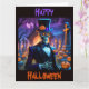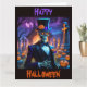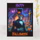 Um noivo esquelético assustador e bonito na noite de Halloween num cemitério assustador. Adicione seu próprio texto personalizado.