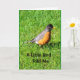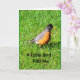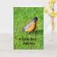 Um ladrão de laranja e preto, fotografado contra grama verde-clara, é o assunto do meu cartão "Um Pássaro Pequeno me disse que é seu aniversário".