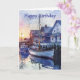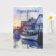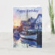 Uma aquarela de um porto muito tranquilo com barcos e casas