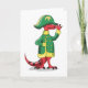 Cartão Um Tiranossauro De Cartoon Vestido Como Napoleão.