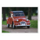 Cartão Um velho carro Citroen 2CV vermelho com uma mulher