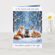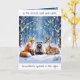 Um doce cartão de Natal ao qual você pode adicionar seus nomes. A frente tem uma adorável ilustração aquática de um veado, guaxinim e raposa em uma floresta festiva de inverno nevado decorada em luzes de Natal. A carta tem um belo poema festivo.