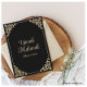 Cartão de Saudação Umrah Mubarak, Elegante Negra Islâmica. Celebrar com seus entes queridos nesta ocasião especial. Este produto tem um design de pergaminho vitoriano de ouro no canto da fronteira para uma sensação de luxo. Personalize as informações que são gravadas usando a ferramenta design. Sua Linha De Design no Zazzle.