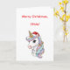 Mande alegria de férias com este adorável unicórnio vestindo um chapéu de Papai Noel e tocando sinos de Natal em seu homem. Perfeito para crianças, amantes de unicórnios, ou qualquer um que goste de cumprimentos mágicos e festivos.