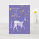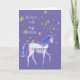 Unicórnio Branco Roxo com estrelas douradas e citação inspiradora: alcance as estrelas ou personalize com seu próprio texto
