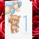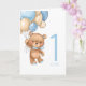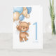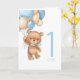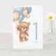 Cartão ursinho azul primeiro aniversario para balõ