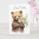 Cartão Urso de Aquarela com Buquê de Aniversário