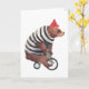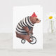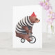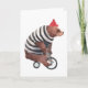 Esta design apresenta uma ilustração aquosa de um urso numa bicicleta vestindo um suéter listrado e um chapéu vermelho.