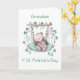 Celebre a primeira Rua do seu neto precioso, o Dia de Patrick com este doce e encantador cartão. Um urso de aquarela suavemente balança de um galho, rodeado de um verde delicado e de pedras sortudas tecidas na corda do balanço. Os azuis leves e verdes criam uma sensação suave e sonhadora, fazer este cartão tão tenso e especial como o seu pequeno. Com um dentro de mensagem sincera, este cartão digno de manutenção é uma forma perfeita de compartilhar amor, sorte e Rua. Felicidade do Dia de Patrick com seu neto na sua primeira celebração do feriado.