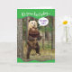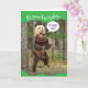 Este urso Kodiak está caminhando pela floresta, carregando um enorme bolo de chocolate Aniversário. Ele é educado o suficiente para perguntar se "você quer bolo?" A resposta óbvia a essa pergunta só pode ser, "Será que um urso treme na floresta?" Cartão de aniversário divertido para quem ama bolo de chocolate e ursos bonitos.