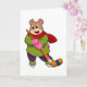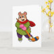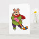 Cartão Urso no hóquei no gelo com taco de hóquei no gelo