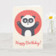 NewParkLane - Cartão de Aniversário Infantil, com um desenho animado de um ursinho Panda fofo, contra um fundo vermelho e bege.