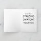 Um urso pardo adulto está dando um aplauso de pé neste engraçado cartão fotográfico. Personalizável - altere a mensagem do balão de pensamento para se adequar à sua ocasião ("você se formou? você vai se casar? você conseguiu um emprego? Eu sinto cheiro de bolo?)