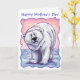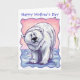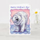 Cartão de Dia de as mães de Arte Polar Cute criado por Imagine isso! Design apresenta a nossa arte original e caprichosa de Traci Van Wagoner, de um urso polar branco e divertido, parado numa paisagem nevada com um céu cor-de-rosa nascente e uma brincalhona e violenta fronteira roxa. Dentro é uma mensagem personalizável que lê, Aqui está um HUG BEAR para seu dia especial! com o urso polar no canto inferior direito. Na parte de trás da carta está o bumbum do urso polar humorístico. Este doce cartão de urso branco é uma forma excelente para todos os amantes de ursos marinhos, amantes de ursos polares, e amantes de os animais selvagens desejarem a sua mãe um Dia de as mães feliz. Traga um sorriso para o rosto dela e não se esqueça de lhe dar um abraço de urso para lhe mostrar o quanto a ama.