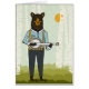 Ilustração de um urso do hipster que veste a roupa nas madeiras que jogam o banjo.