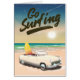 Vá surfar no Poster de viagens, surf de praia de férias de cartoon.