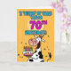 "Eu 'ouvi' que era o seu aniversário de 70 anos!" divertido cartão de aniversário de vaca segurando um bolo de aniversário.