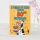 "Ouvi dizer" que é seu 80º aniversário! cartão de parabéns de vaca divertida segurando um bolo de aniversário.