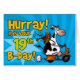 " Hurray! é seu 19o B-dia!" vaca do patinete do divertimento no cartão específico à idade do aniversário